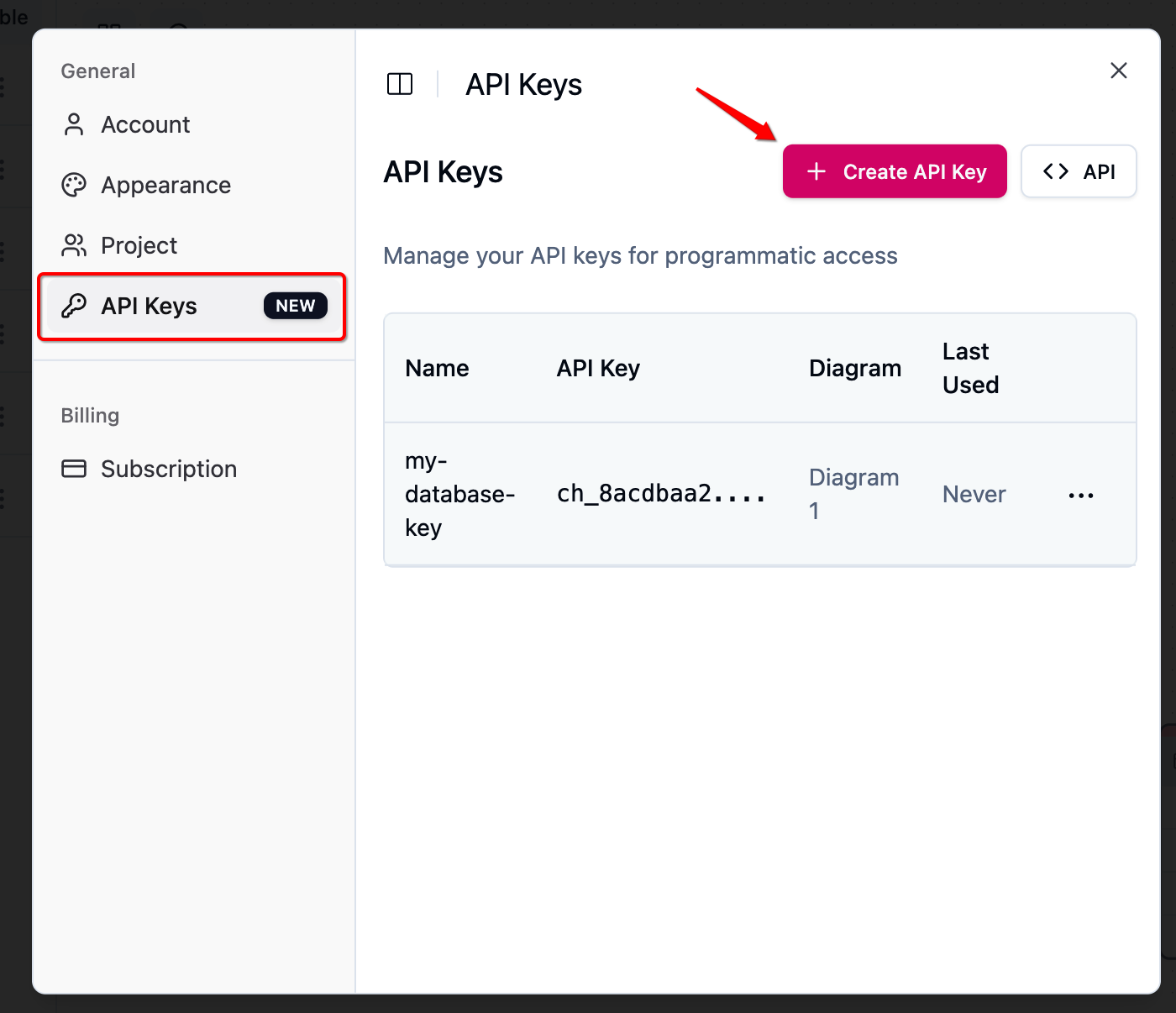 The ChartDB API enables programmatic access to manage and auto-update your database diagrams. It supports authenticated requests using API keys, follows standard HTTP methods and response codes, and accepts JSON-formatted request and response bodies. Use the API to sync your schema changes, automate diagram generation, and integrate ChartDB into your CI/CD workflows or internal tools.Base URL
