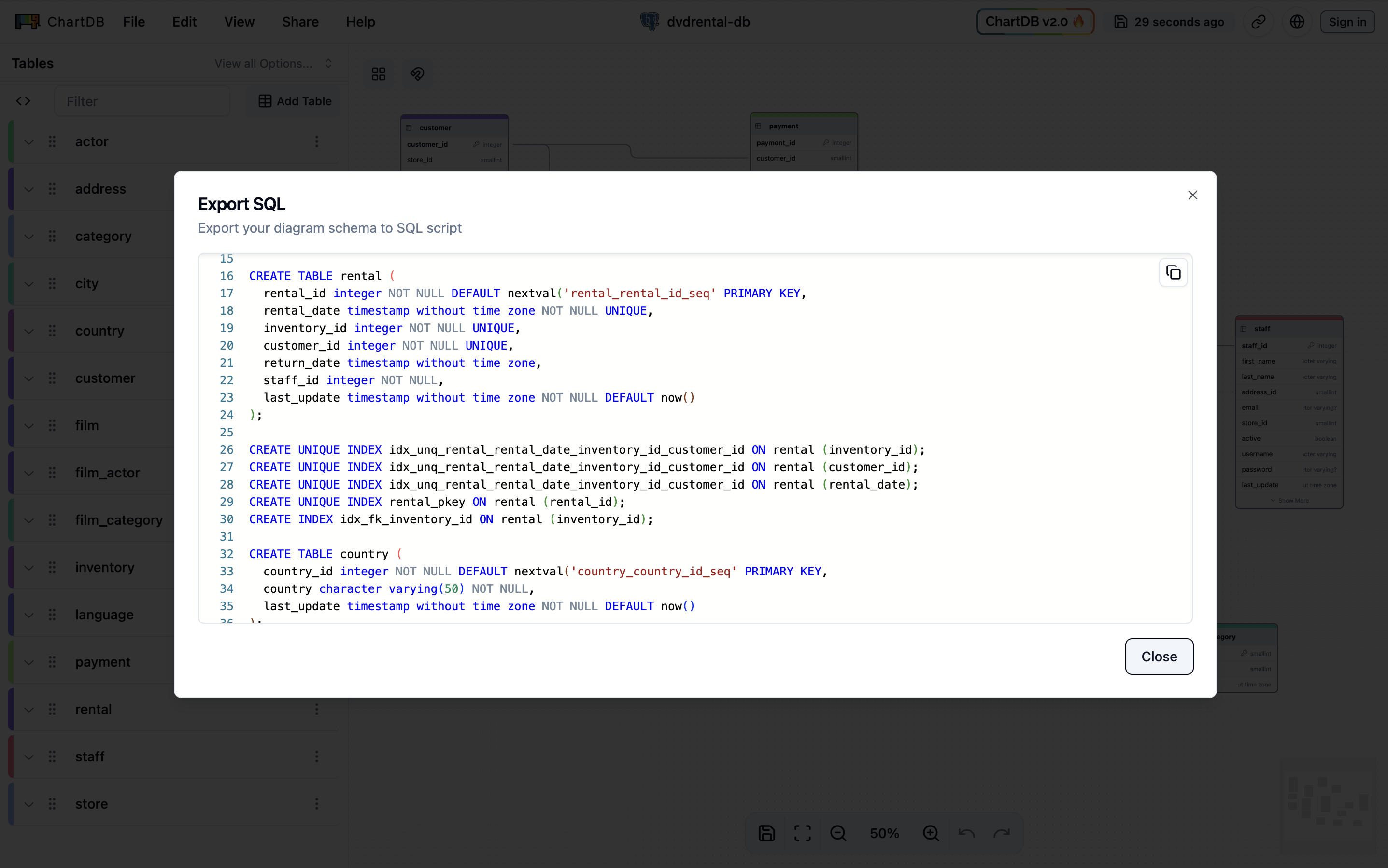 The SQL scripts generated by ChartDB are schema definitions based on your