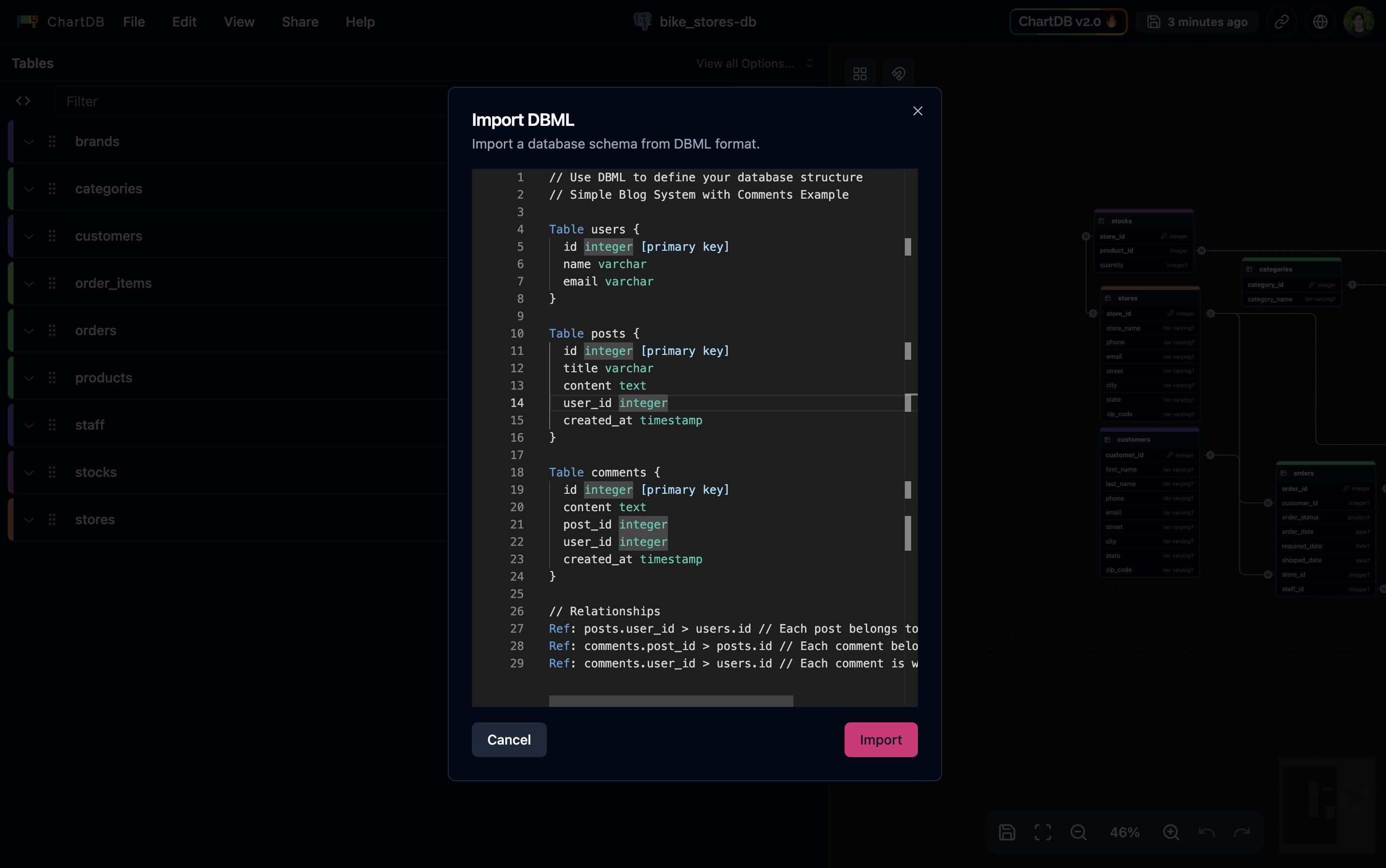 Paste your DBML script and click Import